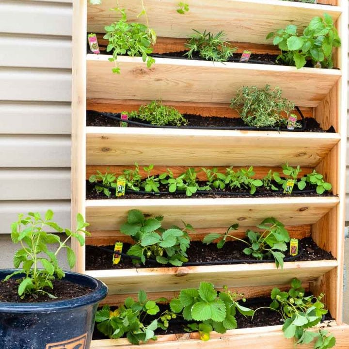 This cedar vertical garden has plenty of room to grow your favorite herbs and plants. The built in drip watering system will make watering your vertical garden even easier.