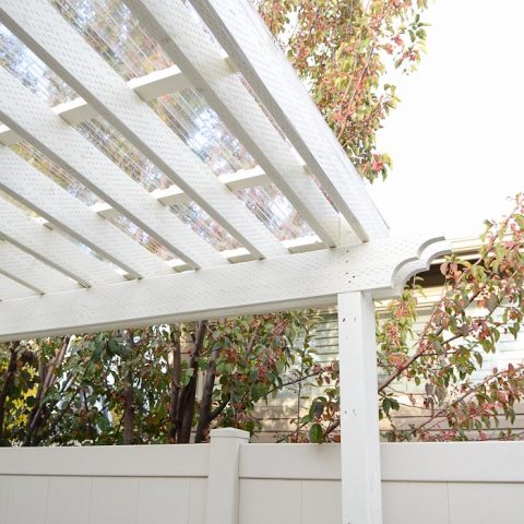 Come see how we installed a clear pergola roof to our pergola. It was the best decision ever. It has turned our yard into a three season patio that we can enjoy in any weather. You can build this for your pergola too!