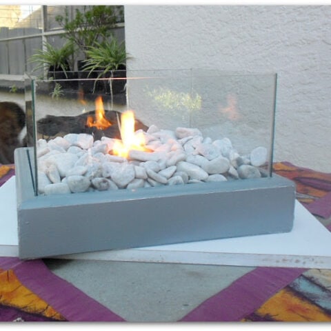 This DIY fire pit is portable and looks perfect on the patio, or wherever you want to add a fire feature.