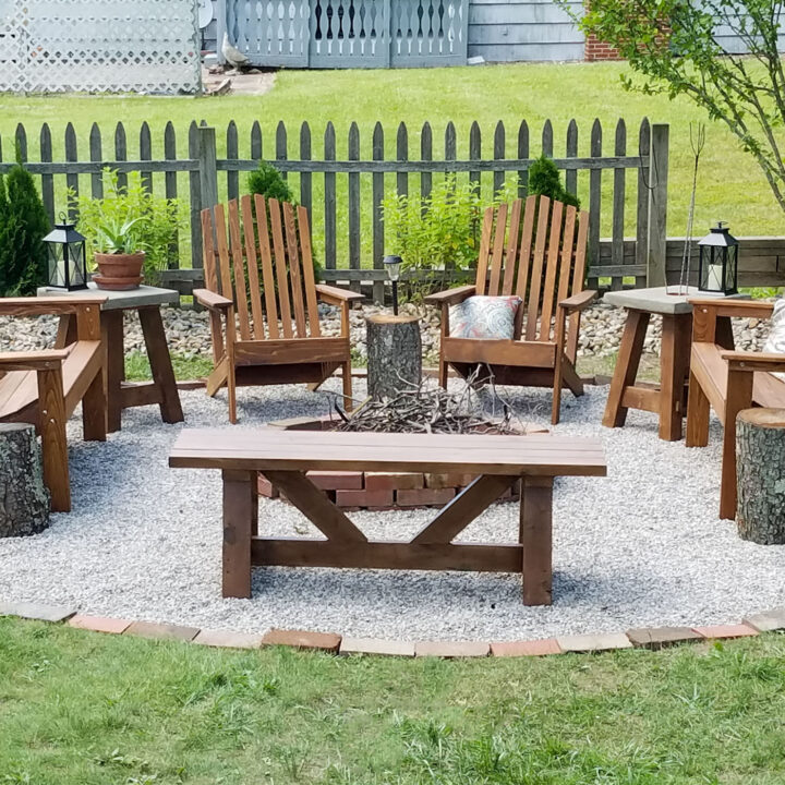 Build a gorgeous DIY backyard fire pit area complete with seating for 6. It's an amazing space for family and friends to enjoy an evening at home.