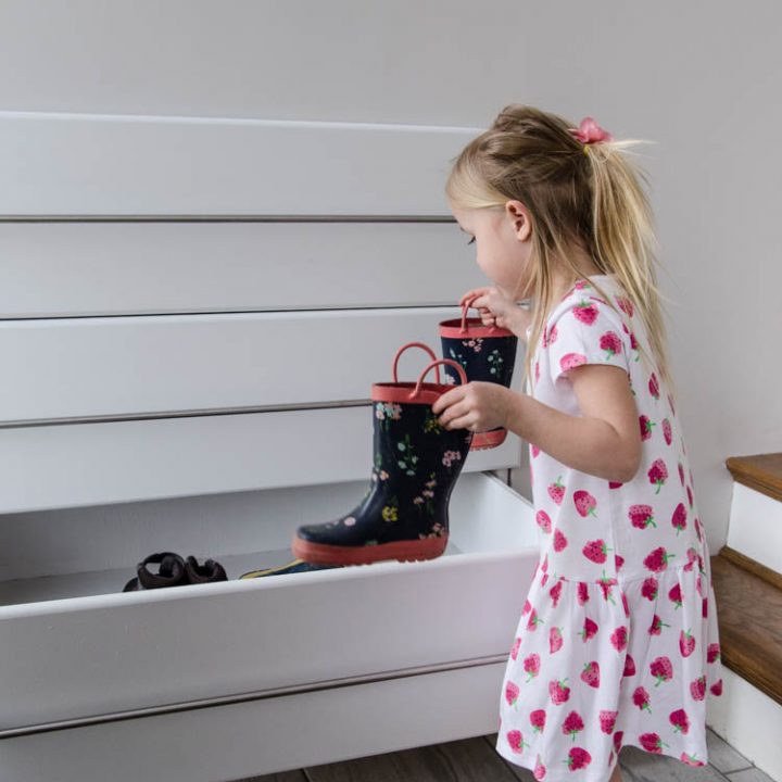 Talk about no wasted space! This DIY shoe storage is literally tucked away in the small entryway. This is one to keep in mind if you are renovating or building.
