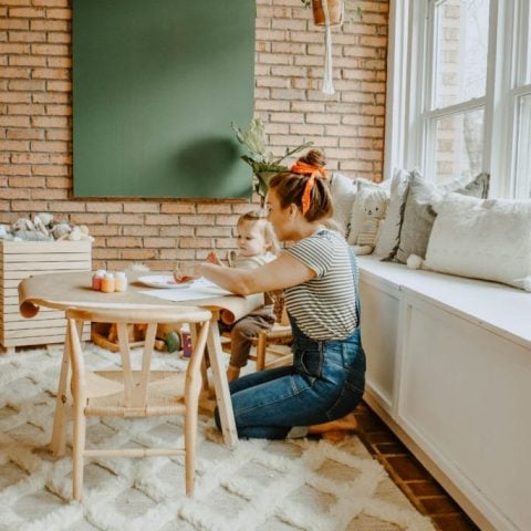 DIY toy storage furniture is a great way to conceal all those toys, that are not the prettiest to look at. This window bench with built-ins is such a great kids organizer idea. It not only looks pretty, but it's the perfect height for the kids to still access their toys.