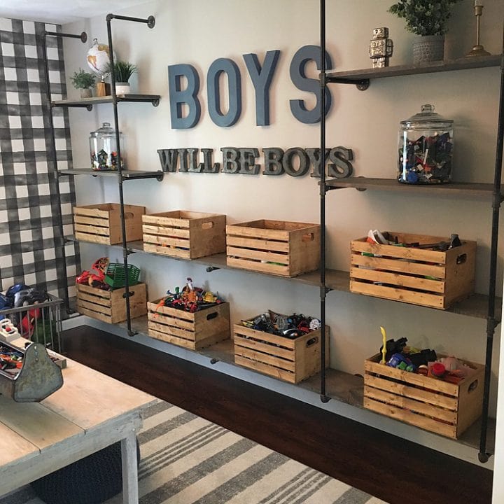 Isn't this DIY toy storage idea just adorable? It has a really cool industrial vibe that will actually compliment your home. Love that it's on wheels too!
