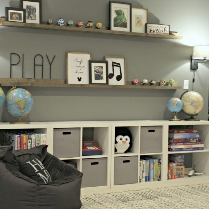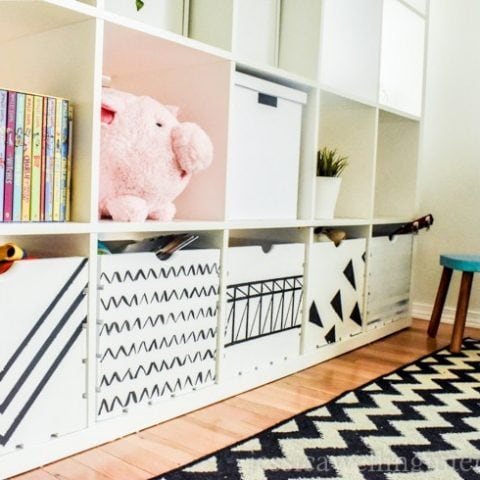 This DIY toy storage idea is a kids playroom dream! Space for all the kids toys, books, blocks and everything else!