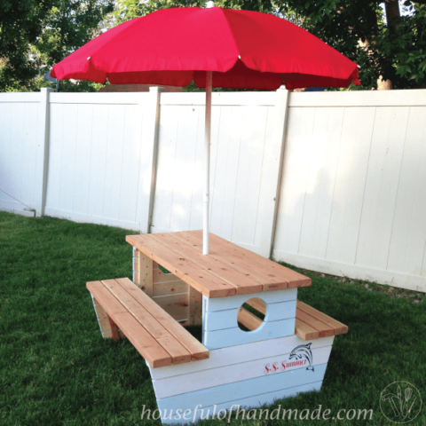 My kids loved using this picnic table for snack time while playing outside. It's easier than you think to build.