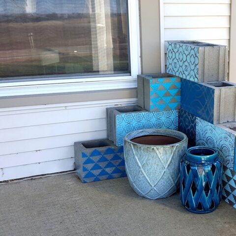 These DIY stenciled cinder block planters add a pop of color to your outdoor space and they are budget-friendly too!