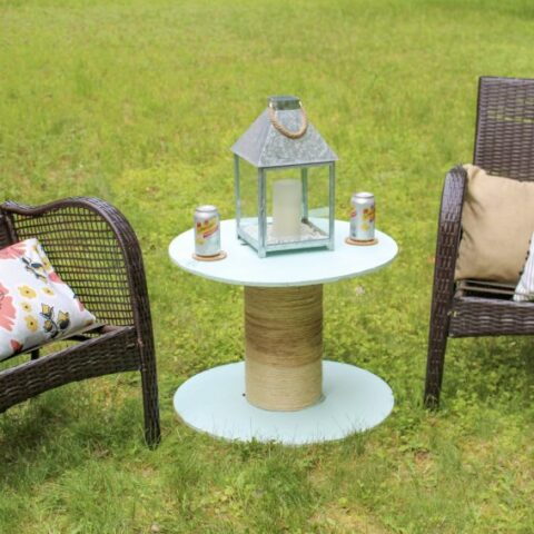 Turn an old wooden cable spool into a unique outdoor side table with this easy DIY.